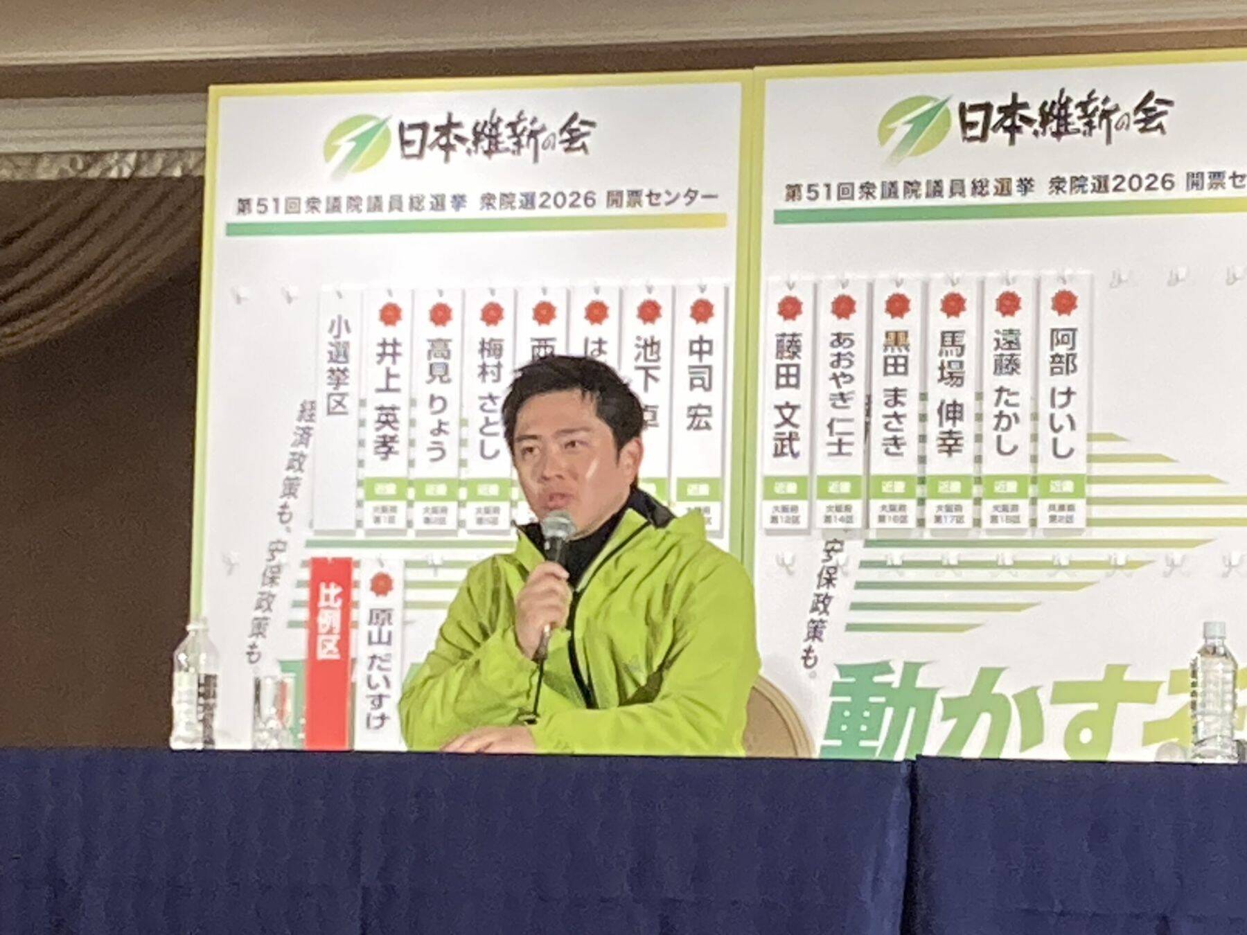 一方、衆院選とのトリプル選挙となった大阪府知事選には3人、大阪市長選は5人が争いましたが、自民、中道、国民民主、共産の各党がともに擁立を見送りました。早々と知事に吉村代表、市長に横山英幸副代表に当選確実が出ました。