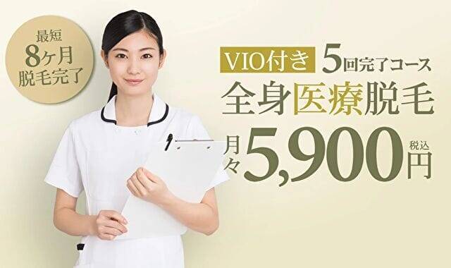 (VIO付き)一括払い¥280,000(税抜)分割払い月々¥5,900(税込)全身脱毛5回コース