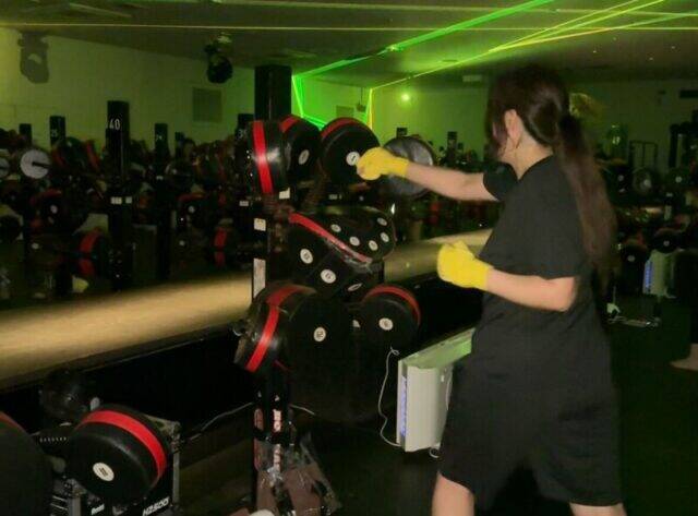 サンドバッグを使ったトレーニングが暗闇で行われ、クラブで踊るような感覚で、楽しみながら本格的なトレーニングができます。