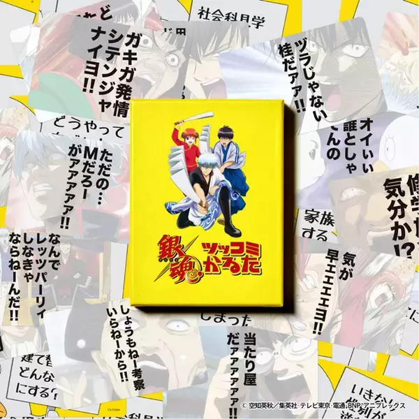 今回のアイテム「銀魂ツッコミかるた」は、人気アニメ『銀魂』の世界観が人気ボードゲーム「ツッコミかるた」にプラスされた“トーク&かるたボードゲーム”。