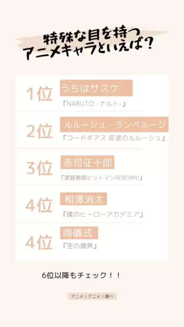 「特殊な目を持つアニメキャラといえば?20年版 2位「コードギアス」ルルーシュ、1位は昨年2位からランクアップ」の画像5