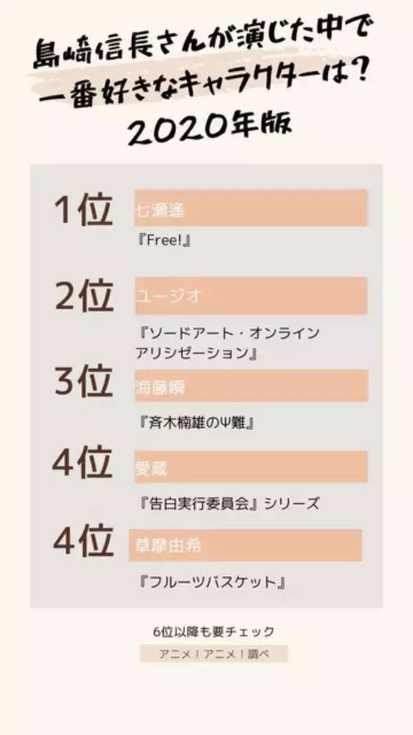 [島崎信長さんが演じた中で一番好きなキャラクターは? 2020年版]TOP5