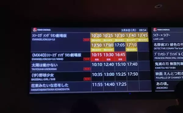 「シン・エヴァンゲリオン劇場版」公開日の写真。座席状況(著者撮影)