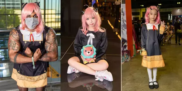 そして、個人だけでなく家族揃ってカジュアルにコスプレを楽しむ層が非常に多く、『SPY×FAMILY』アーニャのコスプレが一際多く見られました。本稿では会場で見かけたアーニャのコスプレ特集をお送りします。筋肉ムキムキの男性が扮したアーニャなとくに、記念撮影を求められたり、1ポーズごとに歓声が上がったり、来場者の関心が高かったです。