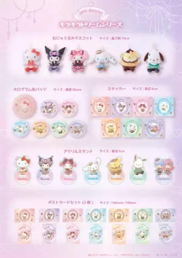サンリオキャラクターズより「キラキラドリームシリーズ」のグッズが登場。2024年9月26日から「むにゅぐるみパティオ」対象店舗で販売が開始される。このたびサンリオキャラクターズより「キラキラドリームシ...