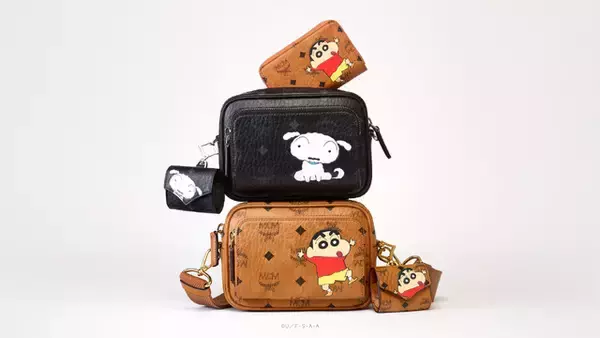『クレヨンしんちゃん』とドイツ「MCM」のコラボコレクションは、シグネチャーパターンのヴィセトス柄に「しんちゃん」と野原家の犬「シロ」がそれぞれ描かれたラインナップされている。