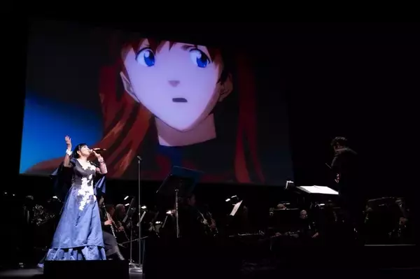 そして『シン・エヴァンゲリオン劇場版』の劇中曲である「psycho」「the path」を高橋がオペラボイスで歌唱し、映画本編の印象的なシーンで流れる楽曲へと移る。壮大なアレンジが施された「What if? 2022」が楽団の演奏と高橋の歌声により披露されると、会場全体が感動の渦に包まれ、鳴りやまない拍手が送られた。