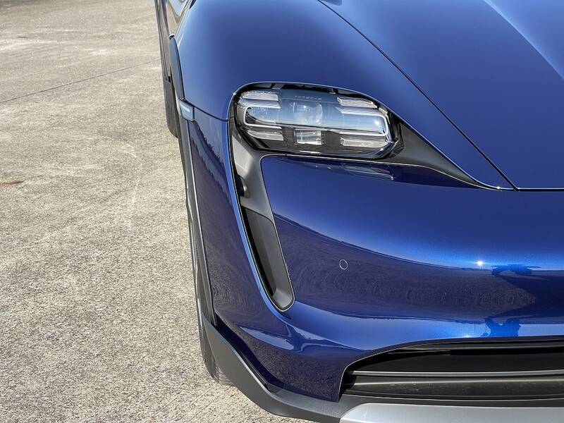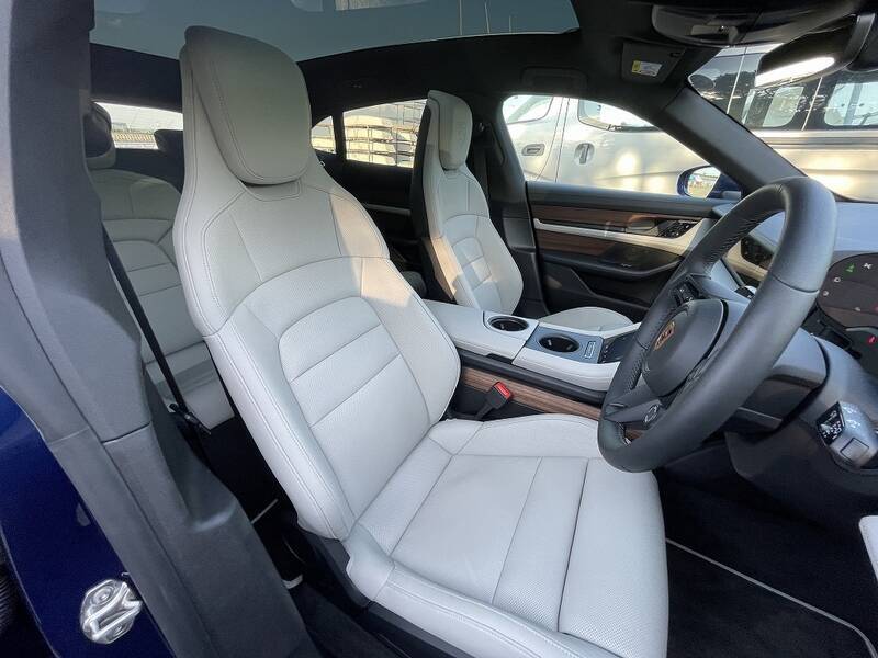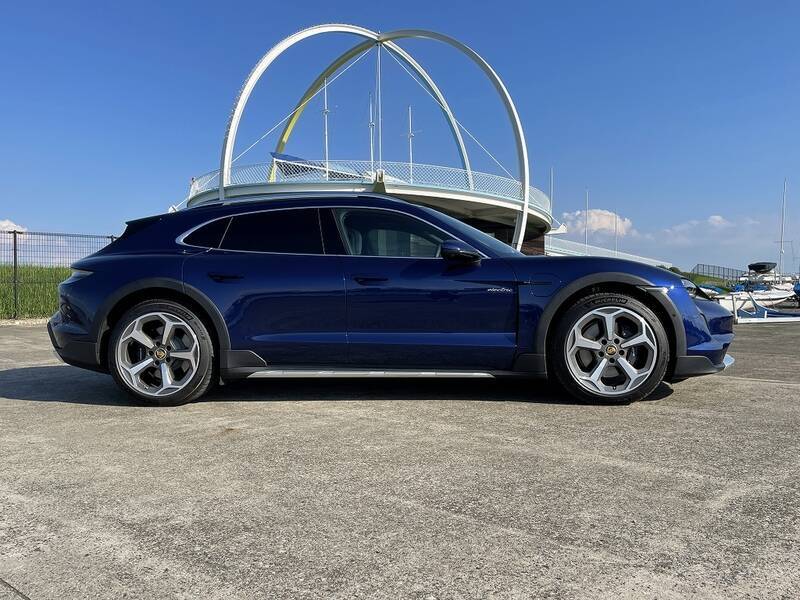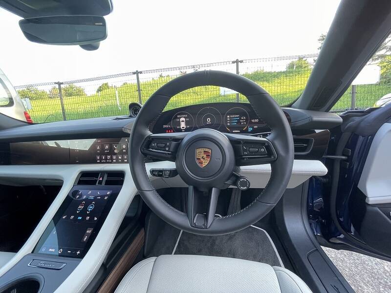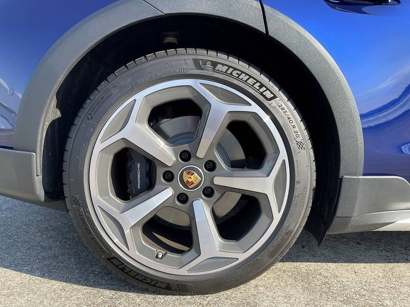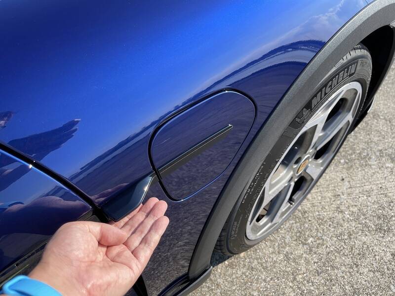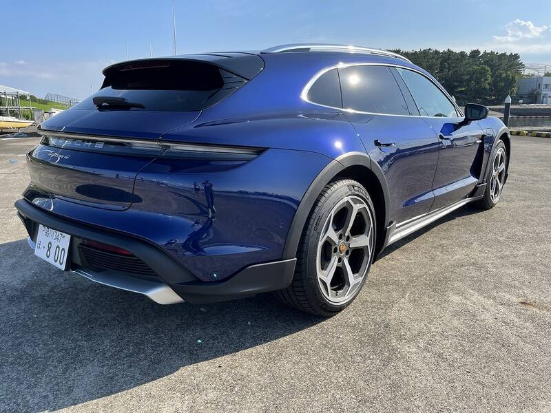 また最低地上高はタイカンと比べると20mmアップしており、オプションの「オフロードデザインパッケージ」を装着するとさらに10mmアップする(試乗車は装着済)。そしてスマートリフト機能が標準装備なのでインパネにある車高調整のようなアイコンをタップすれば40mmアップと合計で70mmも上がる。これならバンパーの下を擦ってしまう心配もない。なお、スイッチで上げた車高はある程度走ると自動的に元に戻るので、「さっき車高上げたし大丈夫っしょ!」と勢いよく段差を乗り越えないようにしたい。