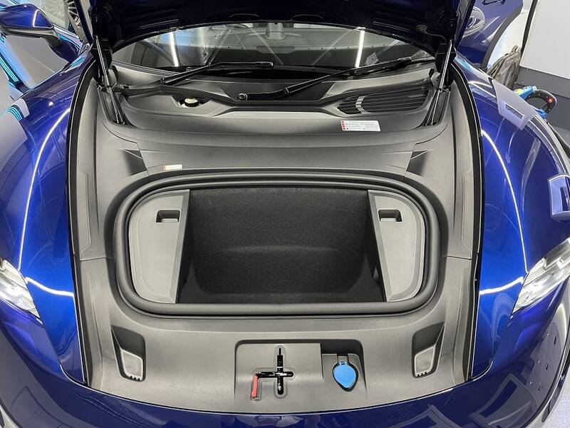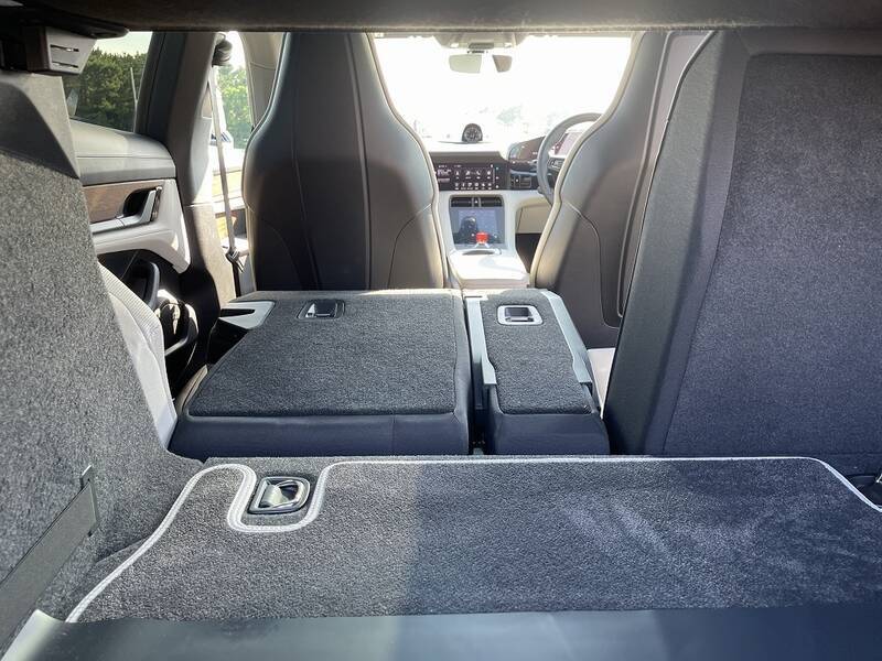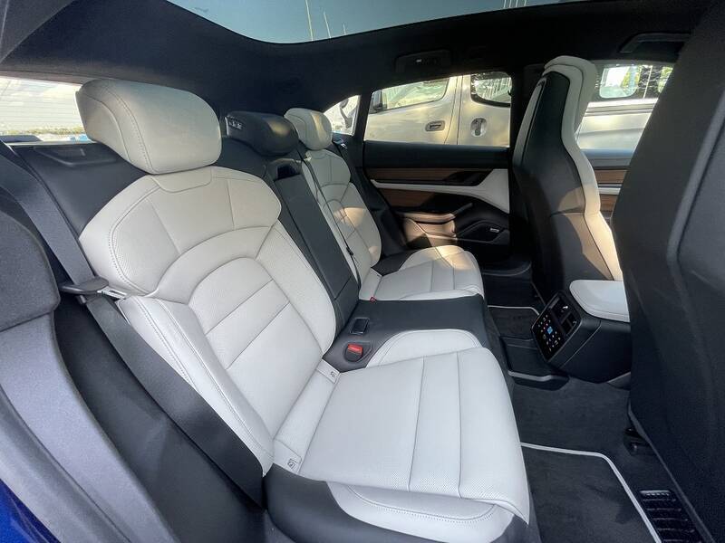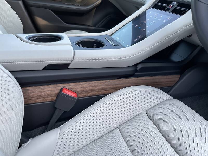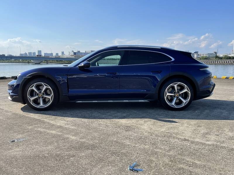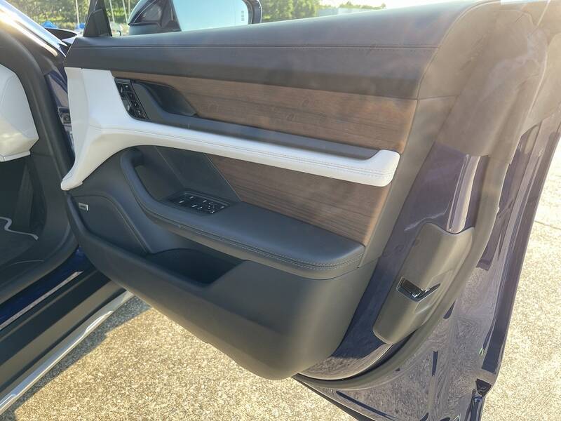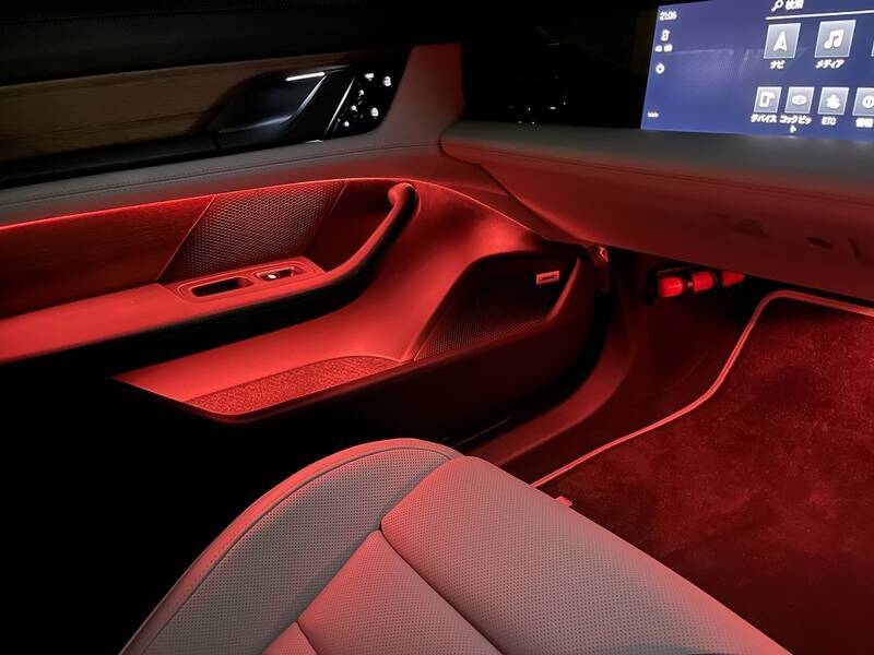 また最低地上高はタイカンと比べると20mmアップしており、オプションの「オフロードデザインパッケージ」を装着するとさらに10mmアップする(試乗車は装着済)。そしてスマートリフト機能が標準装備なのでインパネにある車高調整のようなアイコンをタップすれば40mmアップと合計で70mmも上がる。これならバンパーの下を擦ってしまう心配もない。なお、スイッチで上げた車高はある程度走ると自動的に元に戻るので、「さっき車高上げたし大丈夫っしょ!」と勢いよく段差を乗り越えないようにしたい。