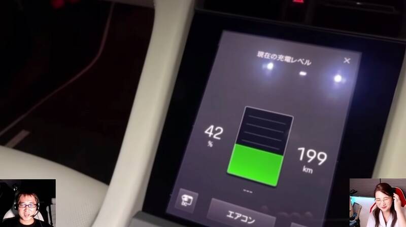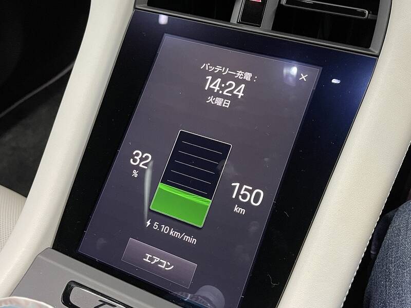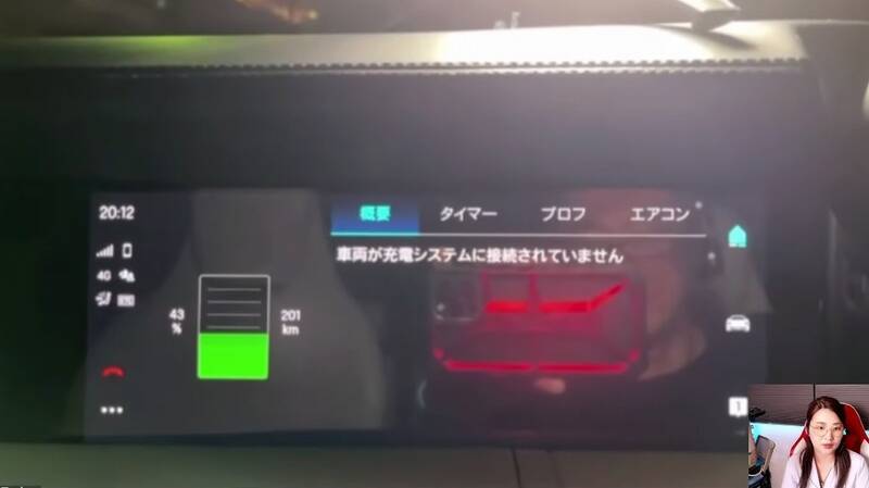 これだけの機材を接続し、エアコンオン、車内灯オン、オーディオはオフ、という状態で19時のリハがスタート。バッテリーの残量を見ると、45%(航続距離205km)だった。そして20時の本番開始の時点では43%(航続距離201km)。1時間で2%減ったことになる。この日の生放送はポルシェとXperiaという、筆者がついつい熱く語ってしまうテーマだったので通常20時半で終わるところ、20時45分まで延びてしまった。この番組終了時点でのバッテリー残量は42%(航続距離199kmであった。これは完全撤収の21時までも変わらずだったので、2時間で約3%(航続距離6km)減ったということになる。なお、バッテリーが100%からではないのは、日中に筆者が走り回ったからだ。