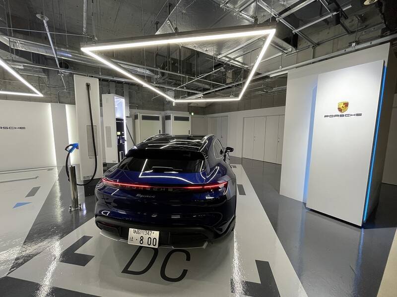 さて、タイカン クロスツーリスモはピュアEVなので、タイカンと同じく800Vバッテリーをフロアに搭載。ノーマルのタイカンではオプション扱いになる「パフォーマンスバッテリープラス」(総容量93.4kWh、420kW/571PS)が標準装備される(通常だと総容量79.2kWh、390kW/530PS)。航続距離はフル充電で最大430~450kmほど(様々な条件による)。