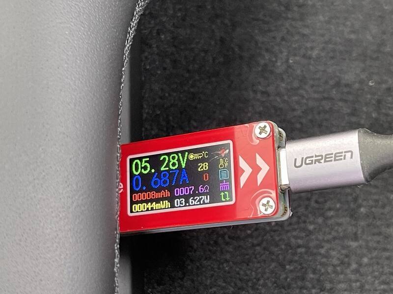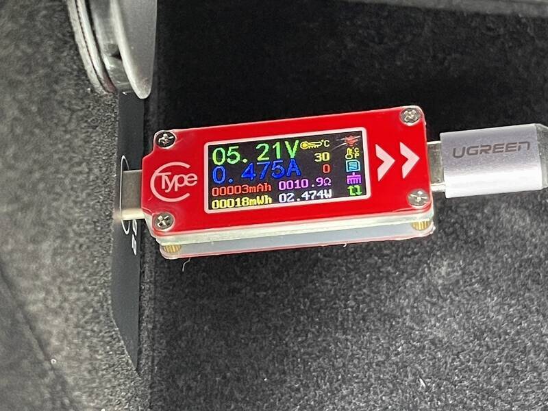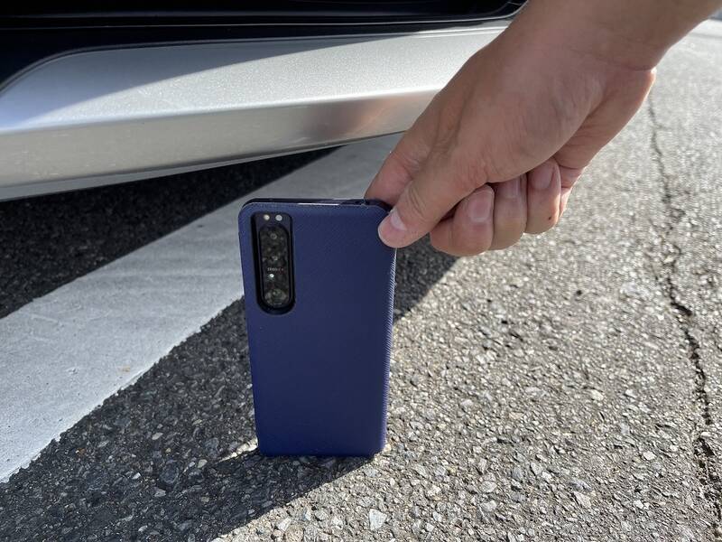 そんな大容量でハイパフォーマンスなバッテリーを積んだタイカンCT。豊富な電力を活かすべく、生放送用の機材としてノートPC、スマホ3台、カメラやマイクなどを持ち込んだ。USB端子はすべてType-C。ただし、PDには非対応なのでType-Cはあくまでも充電、もしくはApple CarPlay用でノートPCの充電はできず。その変わりシガーソケットにPD対応のカーチャージャーを装着。これでノートPCは問題ない。そしてサブカメラ用のiPhone 12 Pro Maxと、チャットなどで外部と連絡を撮るためのXperia 1 IIIをUSB Type-C端子に挿し、生放送に臨んだ。メインカメラとマイクはノートPCにUSB接続だ。