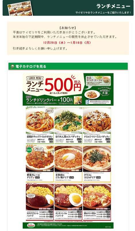 イタリアンレストラン「サイゼリヤ」は、年末年始の12月29日から1月10日までの期間、ランチメニューの販売を休止します。