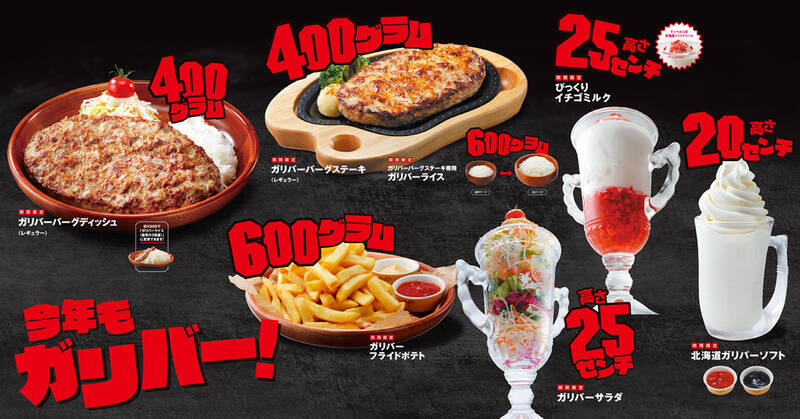 びっくりドンキーの人気メニューをボリューム感ある「ガリバーサイズ」で提供。