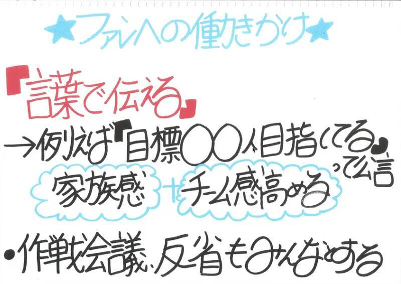 すでにファンになってくれた人たちに対しては、自分の目標・目的を“言葉で伝える”ことがもっとも大事だと、熱く語った。