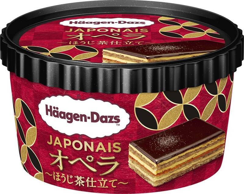 新発売のハーゲンダッツ“ジャポネ オペラ~ほうじ茶仕立て~”は、和素材のほうじ茶を使って、フランス発祥の層構造のケーキ“オペラ”をハーゲンダッツならではの味わいで表現したアイスクリームデザートとなっています。