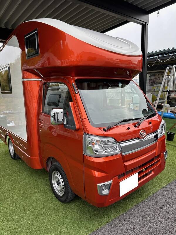 そして2023年5月。ついに、ついに念願の日本製キャンピングカーをゲットしたのです。それは軽トラックのダイハツ「ハイゼットトラック」がベースになっている「JP STAR HAPPY1」という軽キャンピングカーです。しかも現行の1世代前。メーカーが所有していたプロトタイプに近いモノを運良く売っていただけたのです。