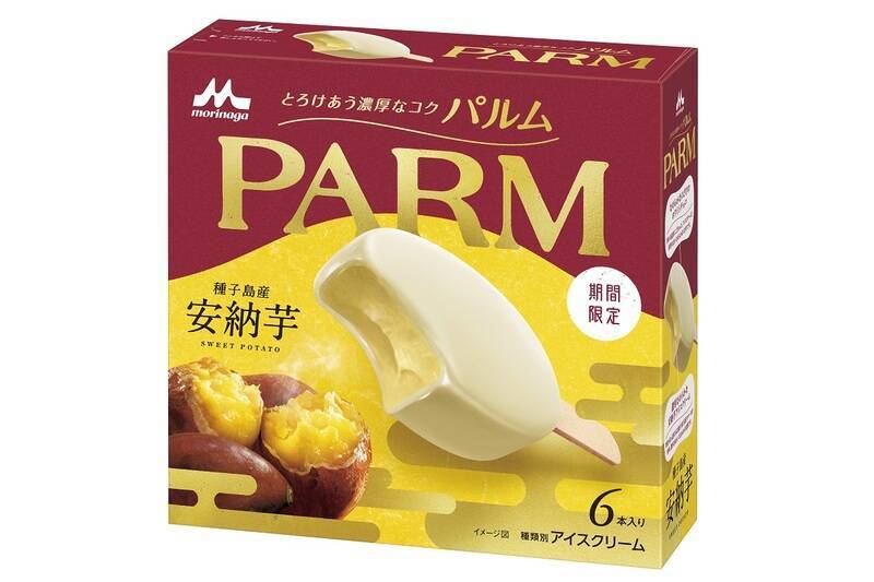 森永乳業はバーアイス「PARM(パルム)」の期間限定商品として「PARM 安納芋」を8月21日に販売開始しました。6コ入り、510円(税別)。