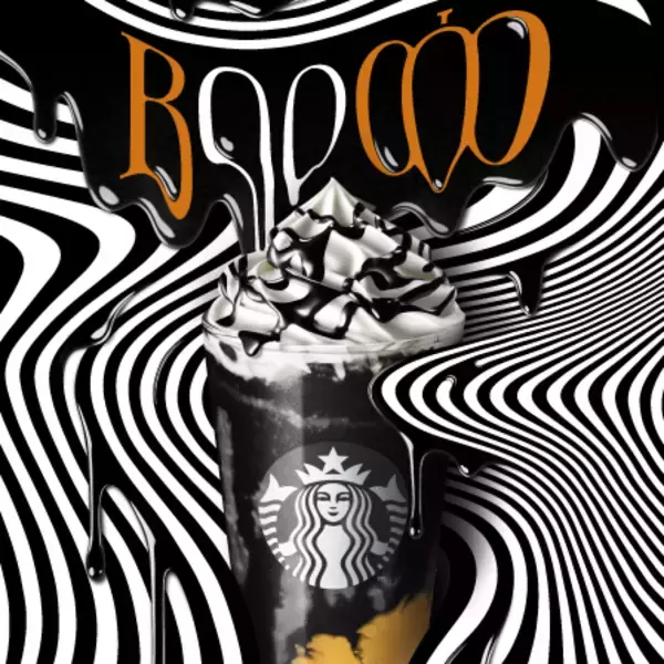 ハロウィンに登場する「Booooo フラペチーノ」は、真っ黒に覆われた怪しげな見た目からはまったく想像がつかない、秋の味覚パンプキンプリンの味わいを存分に楽しめるフラペチーノ。