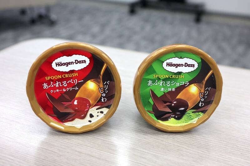 ミニカップ SPOON CRUSHは、2023年春に誕生した五感を刺激する体験型アイスクリームシリーズ。薄く広がったチョコをスプーンでパリッと割る感触と音、さらに割れたチョコからソースがじゅわっとあふれる「パリじゅわ」体験が支持され好評だったという。