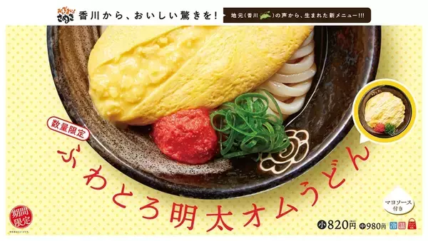 はなまるが運営する讃岐うどんチェーン「はなまるうどん」は、7月25日から27日までの3日間、「ふわとろ明太オムうどん」を全国の店舗で販売する。各日数量限定で用意。