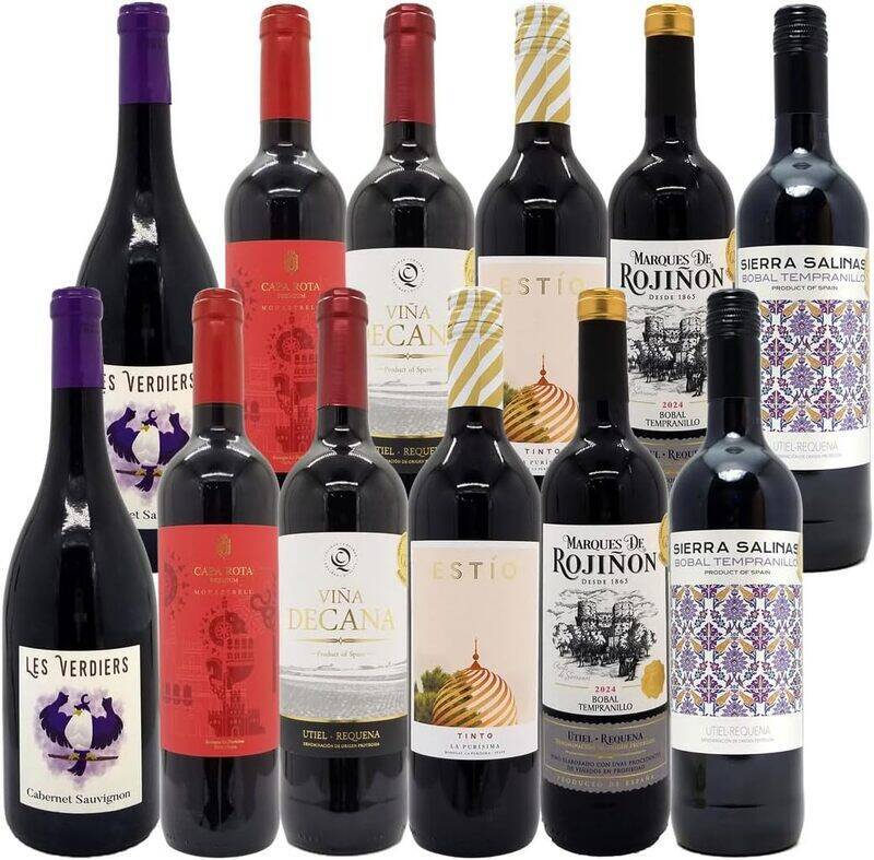 6種類の赤ワインを各2本ずつ詰め合わせた12本セットで、幅広い飲み比べができる構成です。ワイン誌で評価された銘柄や、金賞を受賞したワインが含まれる場合があります。