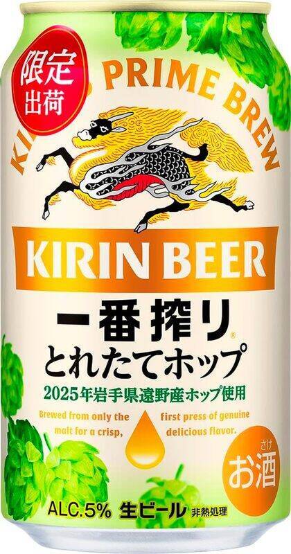 「一番搾り とれたてホップ生ビール」は、とれたてのホップと一番搾り製法による、季節限定の味わいが特徴といいます。一番搾り製法で麦のおいしいところだけを引き出し、この夏とれたての岩手県遠野産ホップを使用して香り豊かに仕上げました。