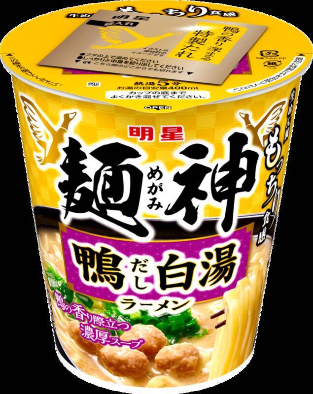 明星食品は「明星 麺神カップ 鴨だし白湯ラーメン」(300円)を、2026年1月5日に全国で発売する。