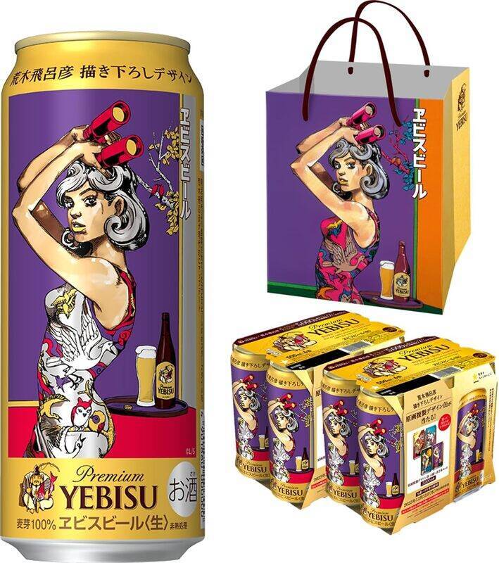 漫画家・荒木飛呂彦氏による描き下ろしデザイン缶の第2弾です。ヱビスビール美人画ポスターを現代的にアップデートし、130年以上続くヱビスブランドの伝統と、現在も進化を続ける世界観を表現したデザインとされています。