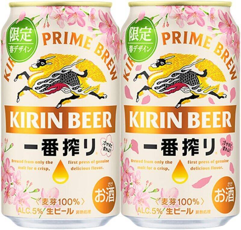 「キリン一番搾り 限定春デザイン缶」は、最初に流れる一番搾り麦汁のみを使用する製法を採用したビールです。麦本来のうまみが感じられる、調和の取れた味わいが特長といいます。