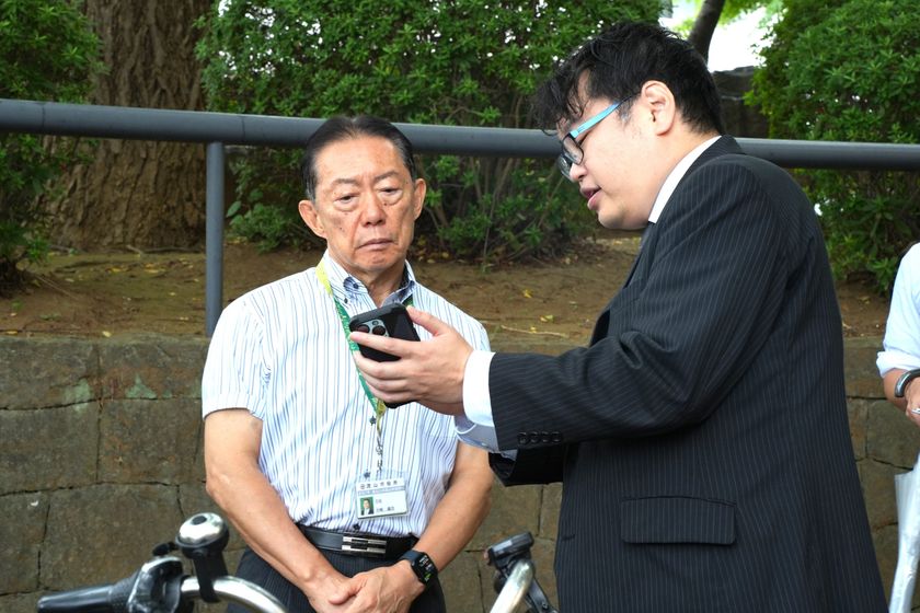 10月1日(水)、流山市役所で本事業のオープニングイベントを実施しました。協定締結後、流山市役所に設置されたステーションで、OpenStreetの工藤代表が井崎市長にHELLO CYCLINGのアプリの利用方法を説明しました。その後、実際に井崎市長がHELLO CYCLINGの自転車を試乗し、「電動アシストが効いて乗り心地が良い。アクティブなシニア層の足としても期待できるので市としても広報していきたい」と、好評をいただきました。