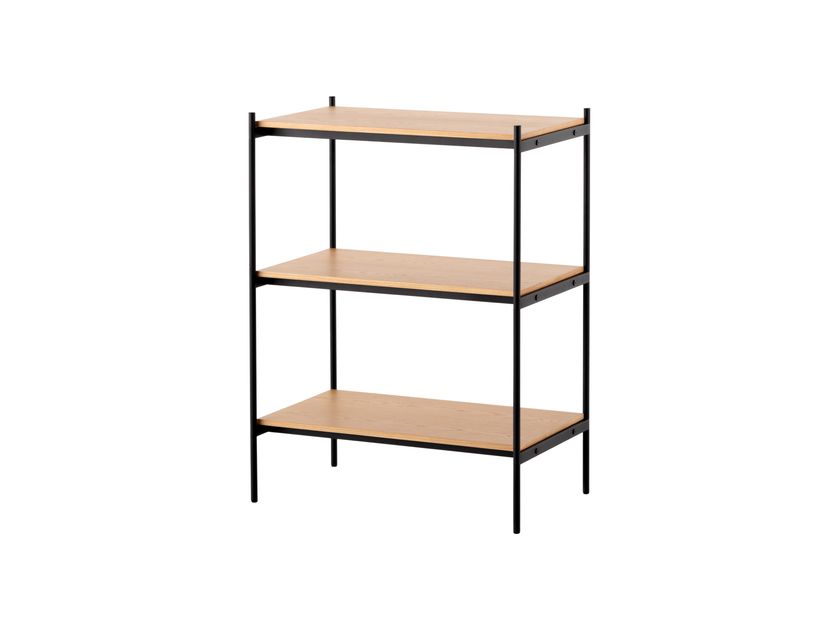 長く使っていただけるよう、傷が目立ちにくい粉体塗装を施した丈夫なスチールを採用。棚板にはナチュラルな風合いを持つ天然木の突板を使用し、耐水性に優れたラッカー塗装を施しました。