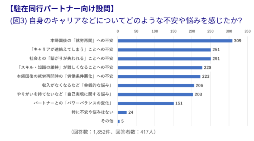 【駐在同行パートナーの約9割が「自身のキャリアに関する不安や悩み」を経験】