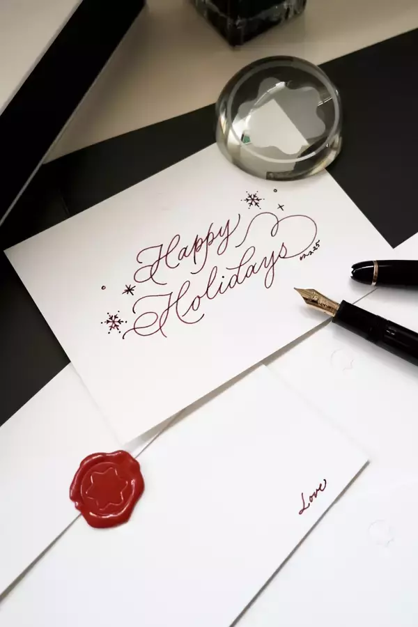 第一弾として開催するオープンレッスンでは、間近に迫ったホリデーシーズンに向けて、“Happy Holidays”などの定番フレーズを美しく書くためのポイントや、カードを華やかに演出するコツを、初心者にもわかりやすく解説いたします。