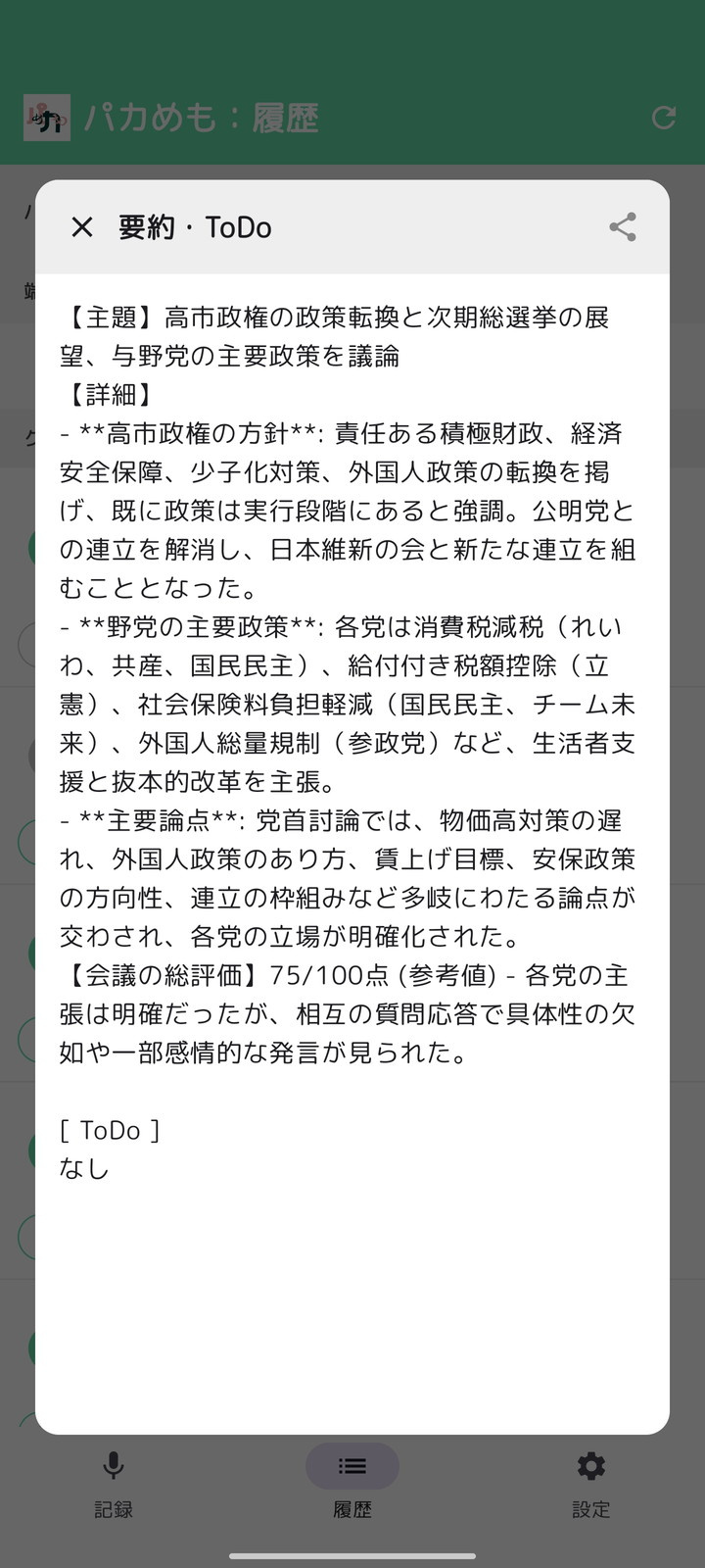 このような背景から誕生した『パカめも』は、単なるAI文字起こし・要約作成アプリではありません。