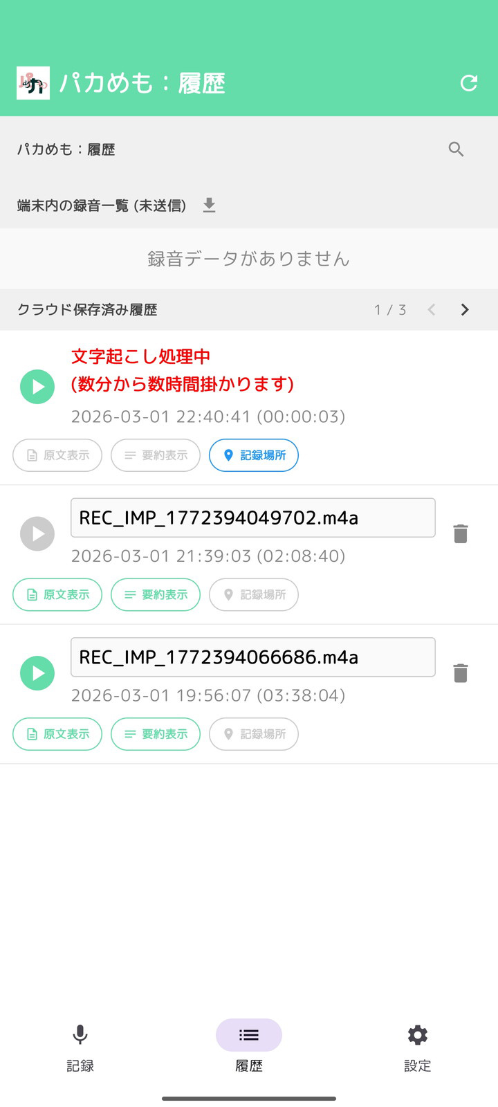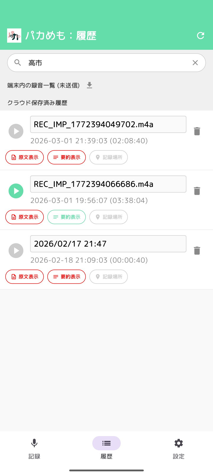 パカめも - 超簡単AI自動要約文字起こしボイスレコーダー - Apps on Google Play : https://play.google.com/store/apps/details?id=com.apppacamemo.app