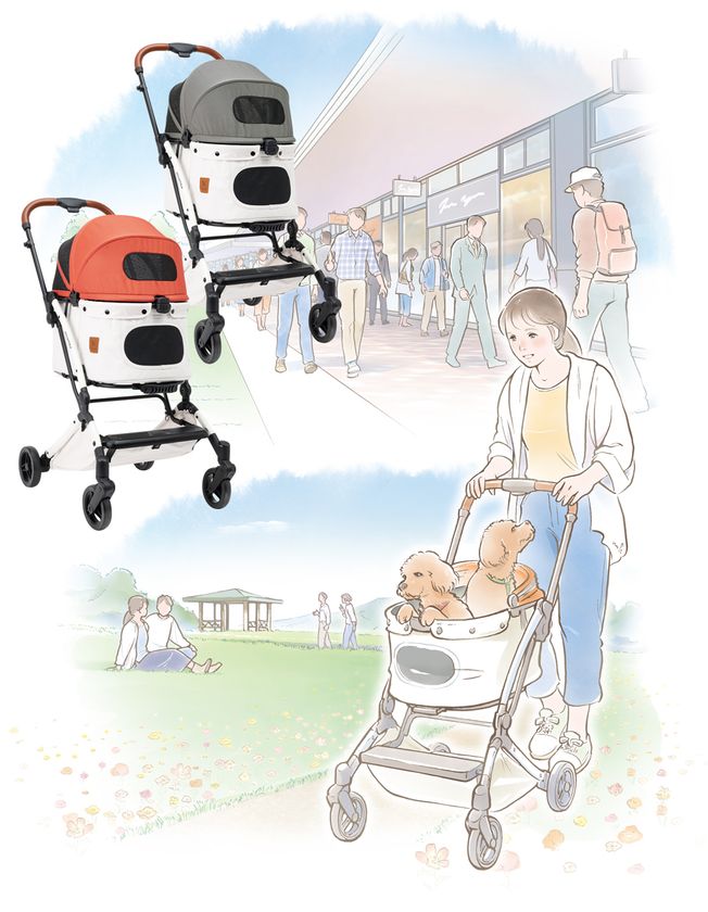 ペットカートnicollka(ニコルカ)は、お出かけがワンちゃんにも飼い主さんにも快適で、笑顔の時間になることを目指した製品です。