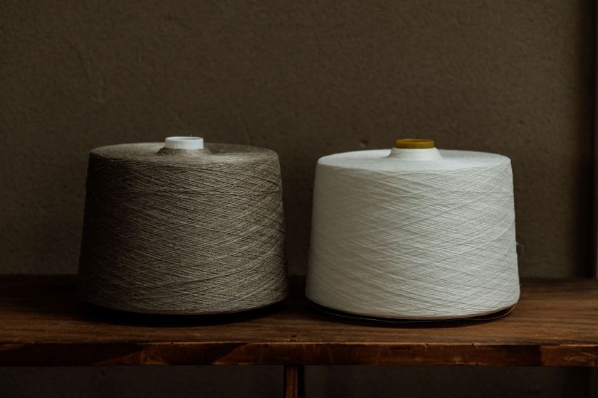 晒しや染色を施さず、黒大麻本来の色を生かした「生成り」の糸は、品質の安定が難しいことから現地の紡績工場で生産が中止。現在残されているのはデッドストックとなった3000mのみ。