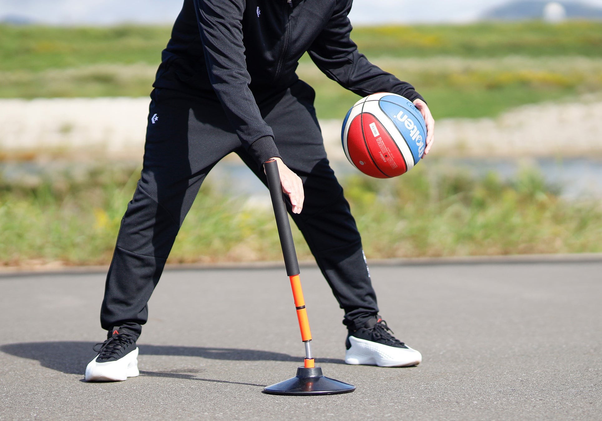 ポール下部のスプリング(バネ)が生み出す揺れは、「動く相手」を意識した実践的なトレーニングを可能にします。フェイントで逆を突くドリブル練習や、素早い動きに対するブロック練習など、工夫次第で実戦に直結する多様なトレーニングが可能です。