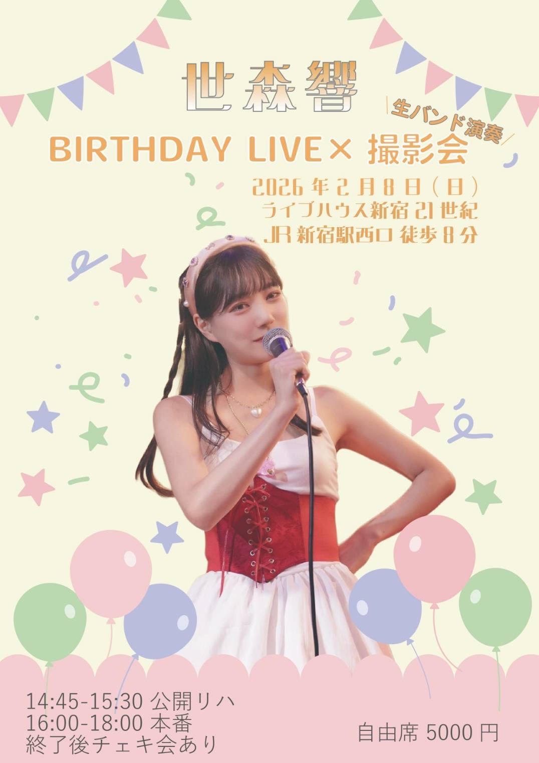 『世森響 Birtheday LIVE&撮影会』が2026年2月8日 (日)にライブハウス新宿21世紀(東京都 新宿区 西新宿 7-13-5(第12山京ビルB1))にて開催されます。