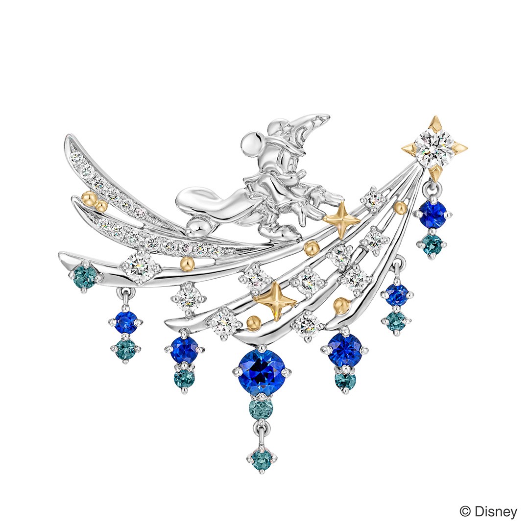 このほどの新作は、「ミッキーマウス」が夢の中で一人前の魔法使いになる象徴的なシーンをモチーフにした、プレミアムジュエリーです。夜空に魔法をかけるきらめきを、多彩な宝石とともにラグジュアリーなデザインで繊細に表現しました。