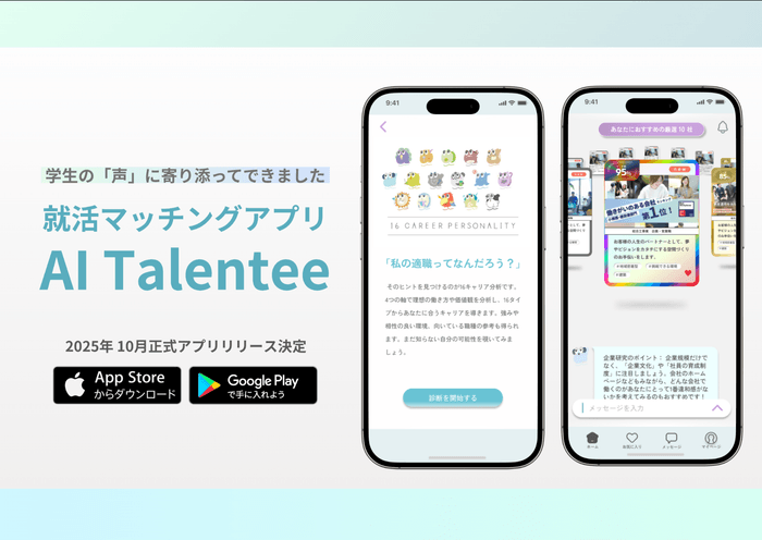 【学生の声から誕生】価値観マッチングの就活サービス「AIタレンティー」が、アプリを正式リリース | NEWSCAST : https://newscast.jp/smart/news/6221832