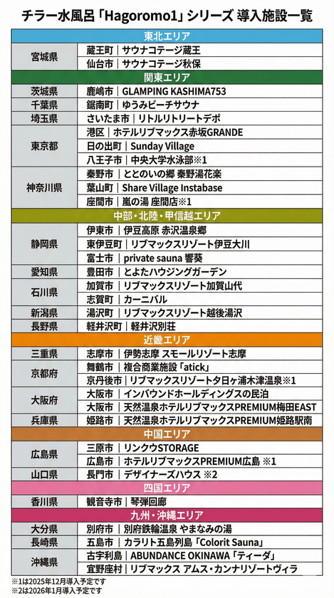 近年のサウナブームを背景に、宿泊施設でもサウナ付き客室や温浴設備の充実がトレンドになる中、「Hagoromo1」シリーズは全国各地の温泉リゾートやホテルを中心に累計導入台数が50台を突破しました。