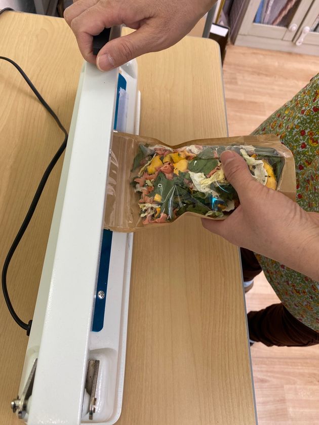 2025年3月、岡崎市農務課が推奨している農福連携活動の成果としての新商品開発を行い、乾燥野菜が完成しました。障がいのある利用者が野菜のスライスや袋詰めを担い、藤川宿などで販売してきました。また、フェーズフリー商品としての可能性から、同年9月にはオカビズ主催の防災展にも出品しました。
