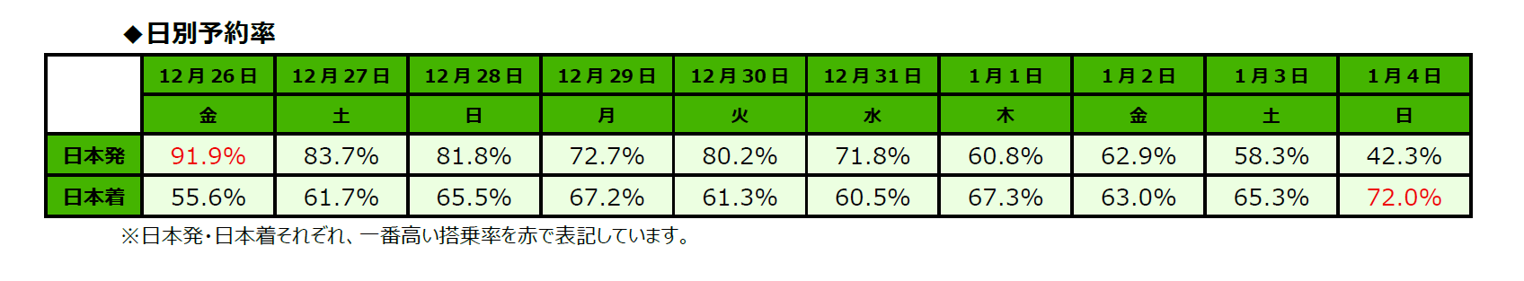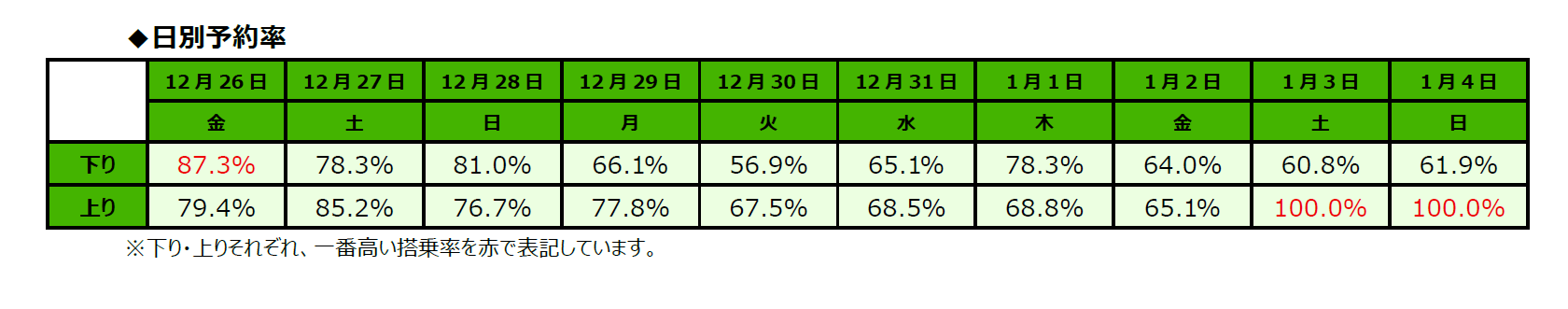 2025年度 年末年始期間(2025年12月26日(金)~2026年1月4日(日))のご予約状況を取りまとめましたので、ご報告します。