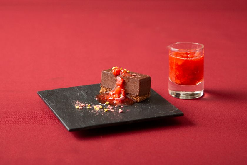 1月21日(水)~2月14日(土)のフェア開催期間中、WEBにてランチタイムにご予約いただいたお客さまには、今だけいちごソースを添えてご提供する濃厚なショコラテリーヌを、ディナータイムにご予約いただいたお客さまには、バレンタイン限定カラー(2色)で仕上げた自家製マカロンを、各色1つずつプレゼントいたします。