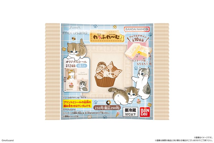 フレームを模したワッフルの表面に高精細なデザインをプリントしたチルドスイーツです。さらにランダムでシールが1枚付属されています。