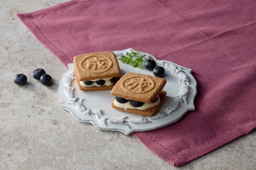 ホワイトチョコ入りのバタークリームと、フレッシュな生ブルーベリーをサクサクのビスケットでサンド。