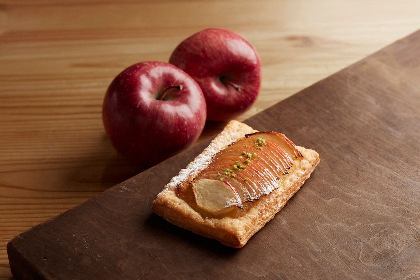 おからクリームを入れたパイに、七飯町で収穫されたフレッシュなりんごをふんだんに乗せ、サクサクに焼き上げたアップルパイ。