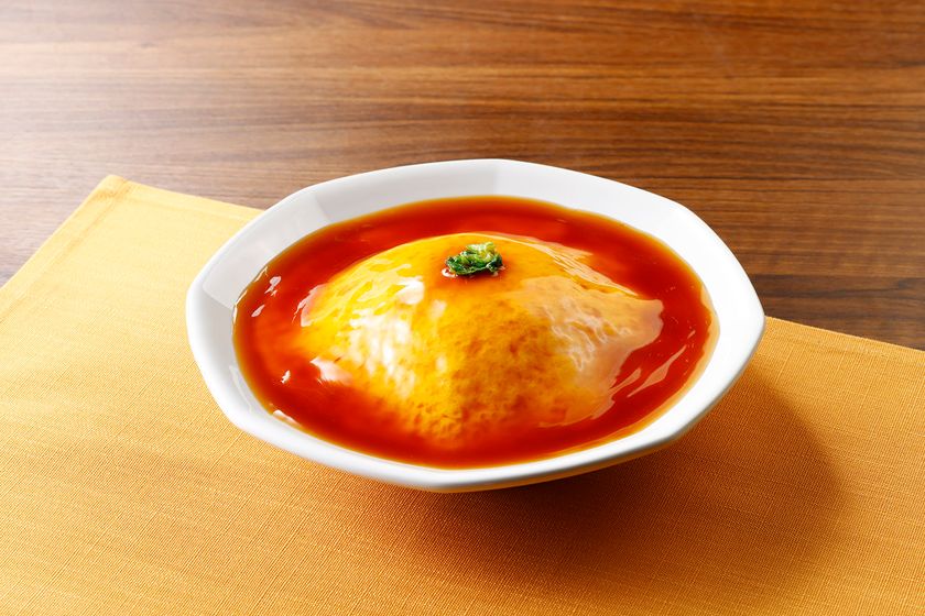 甘酢あんをたっぷりかけた天津飯です。香ばしい濃口醤油のコクのある旨みが味わえます。最後まで、玉子とご飯に甘酢あんをからめて召し上がっていただけるようにご飯よりも甘酢あんを多く入れています。